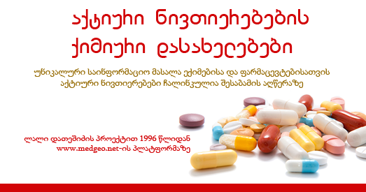 | აქტიური ნივთიერების ქიმიური დასახელება | აქტიური ნივთიერების ბრუტო ფორმულა | აქტიური ნივთიერების დასახელება |